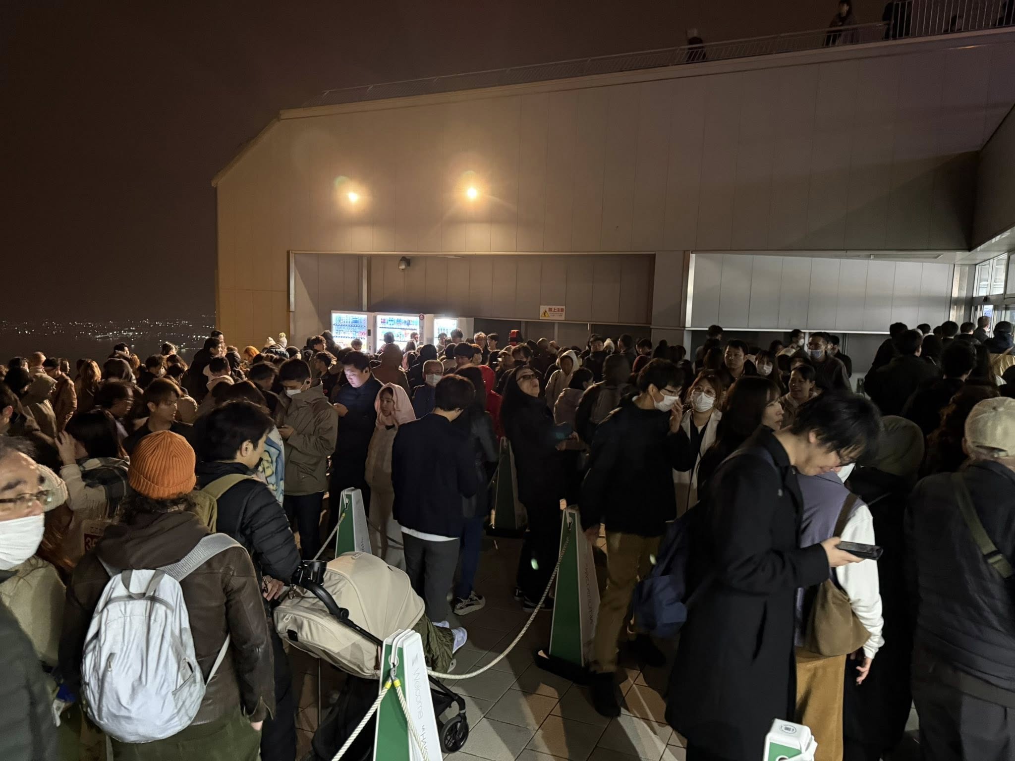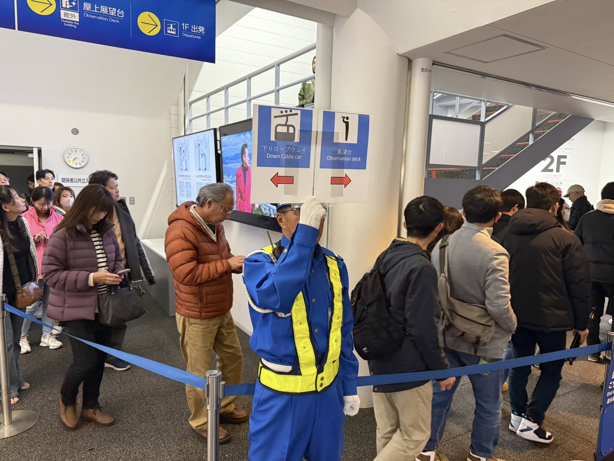 Már lent bemondták, hogy akár egy óra is lehet a várakozási idő a lemenetelre. Elég komoly turistaterelés.