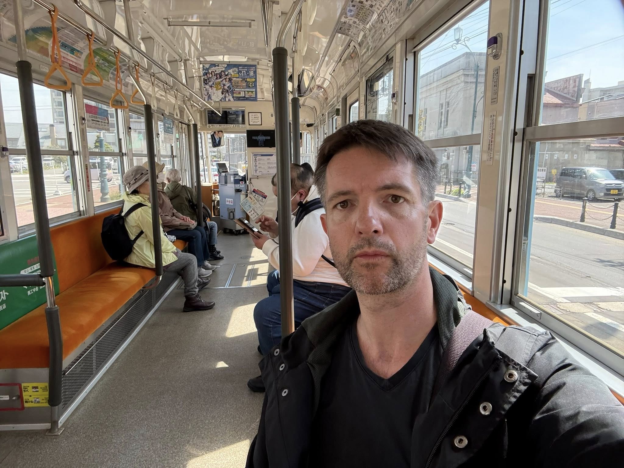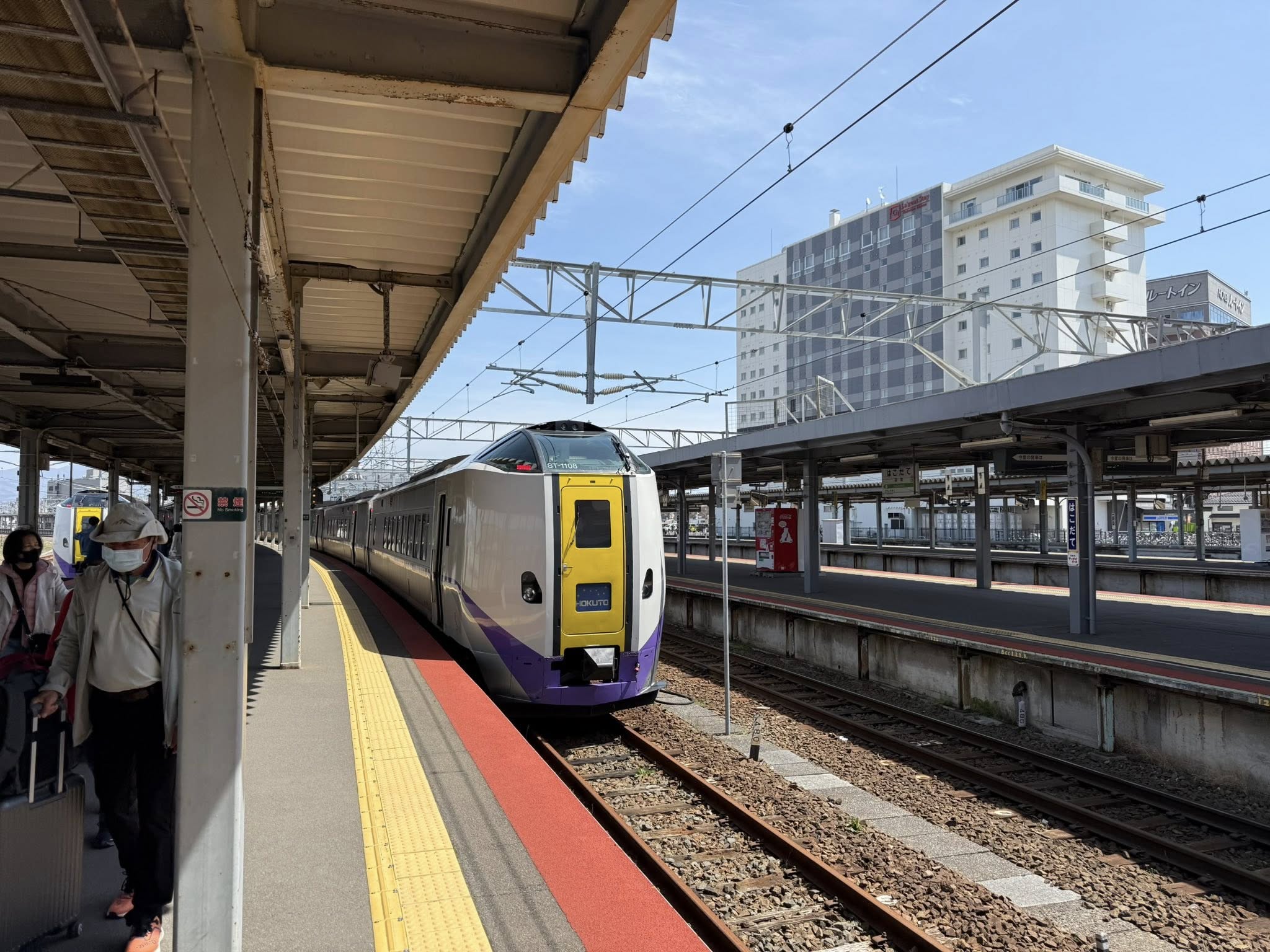 Ez a vonat vitt Szapporóba. Nem sinkanszen, a gyors hálózat véget ér Shin-Hakodate állomáson. Ez csak olyan vacakabb vonat, amely csak 130 km/órával tud menni.