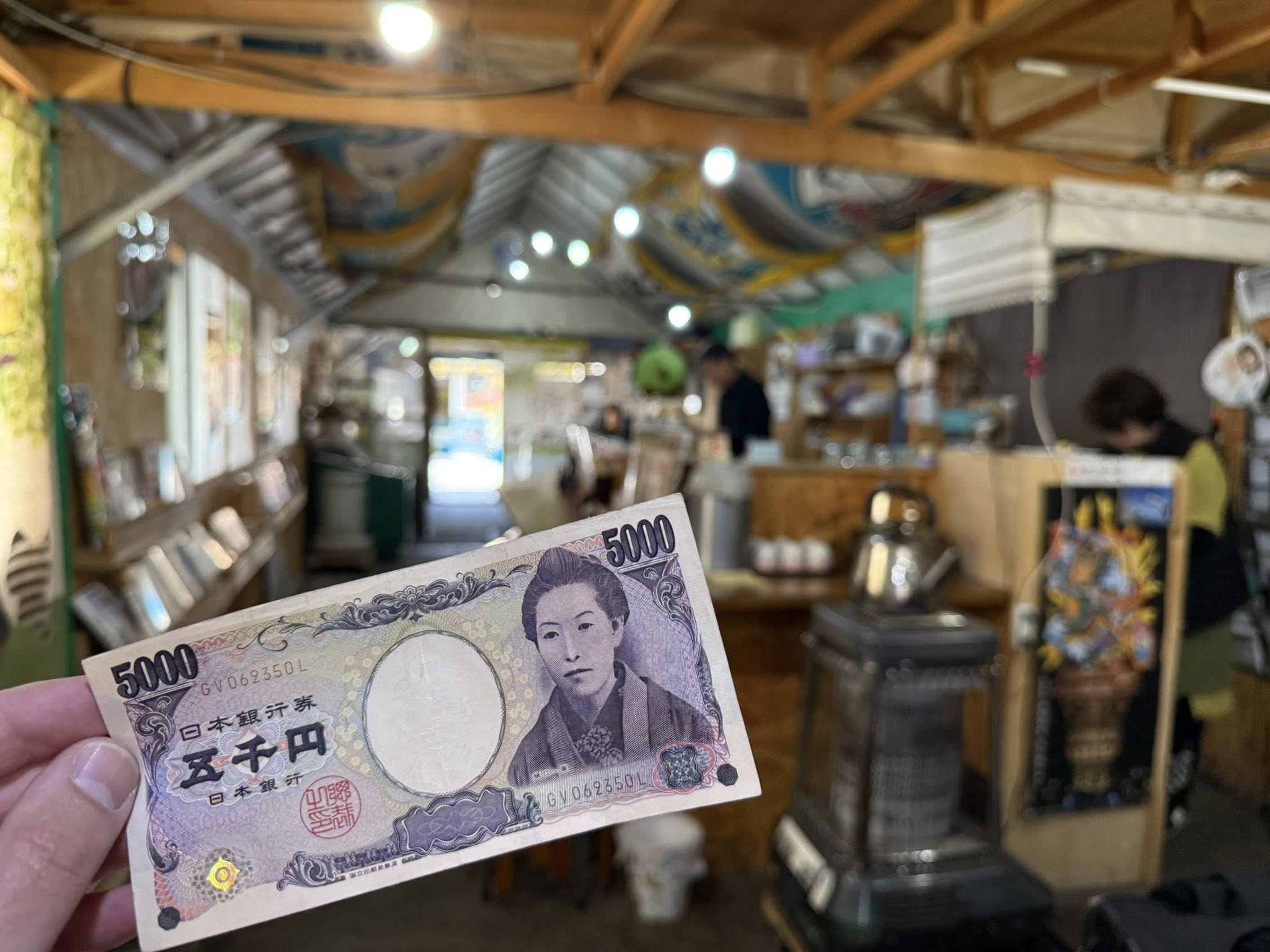 Az utolsó 5.000 jenesemet váltom fel. Japánban nem láttam gyűrött pénzt. Nagyon vigyáznak a bankjegyekre.