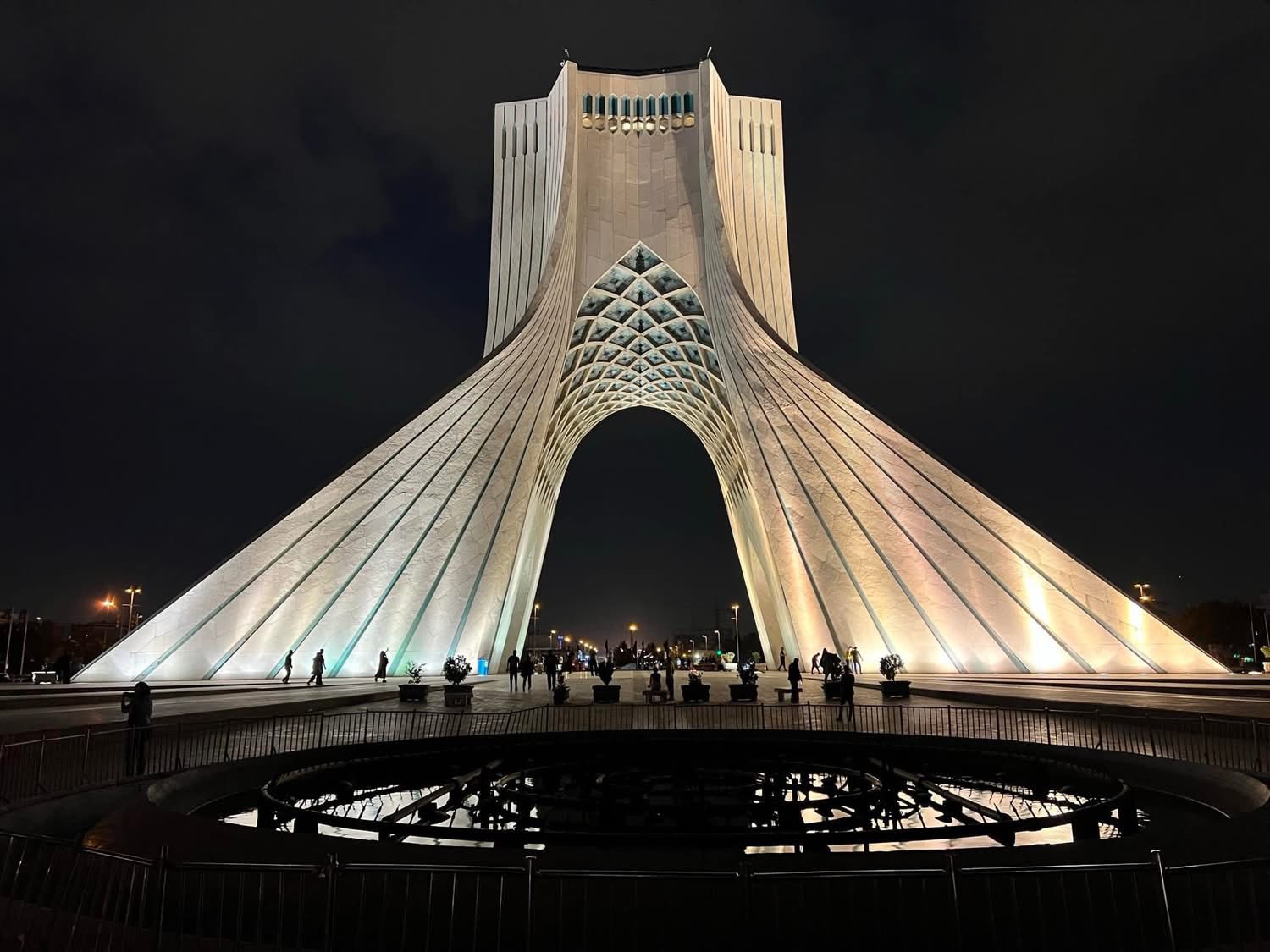 Azadi (Szabadság) emlékmű, Teherán. Eredetileg a Perzsa Birodalom (valamilyen formában való) 2500 éves fennállásának emlékére épült, az iszlám forradalom után átbrendelték a sah utalma alóli felszabadulás emlékművévé. Bővebben: Teherán és a szelfiző turista szobra